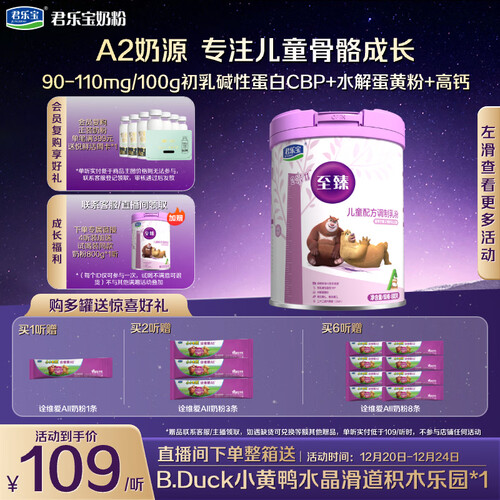 君乐宝至臻4段A2奶源儿童成长奶粉800g CBP高钙骨骼发育3周岁以上