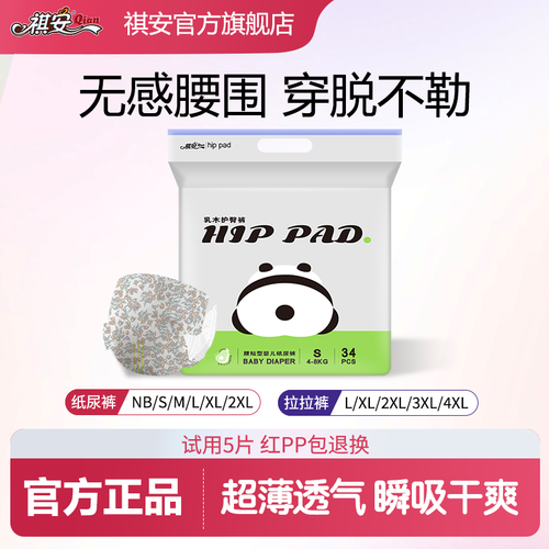 祺安T2熊猫乳木果油宝宝护臀系列柔润透气纸尿裤拉拉裤男女通用尿不湿 【小包装】纸尿裤S码34片