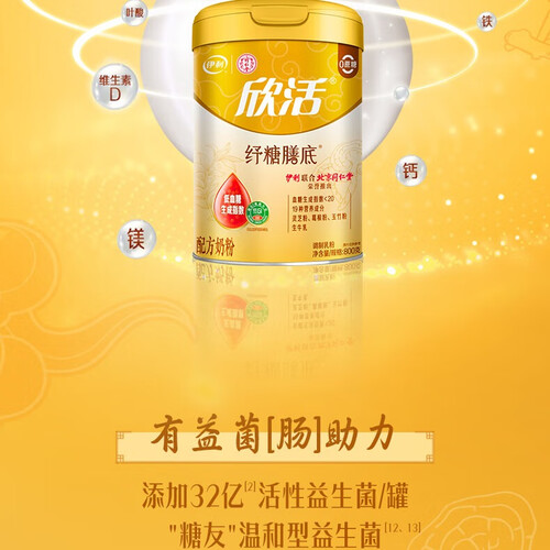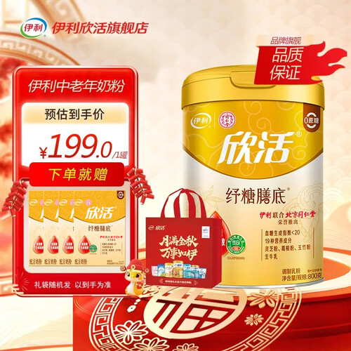 伊利欣活纾糖膳底奶粉中老年0蔗糖成人低GI食品糖尿病人送父母营养品 800克*1罐【送700克】
