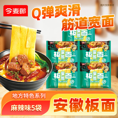 - 今麦郎方便面 袋装安徽板面 非油炸宽面条卤香牛肉泡面速食食品 【5袋尝鲜】麻辣牛肉板面124g
