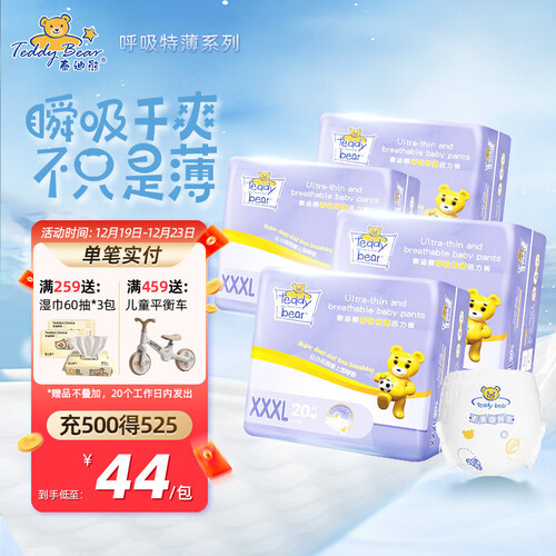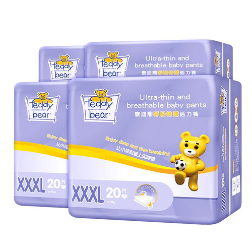 泰迪熊(Teddy Bear)呼吸特薄拉拉裤 超薄透气干爽婴儿尿不湿成长裤 XXXL20片*4包(建议34-42斤)