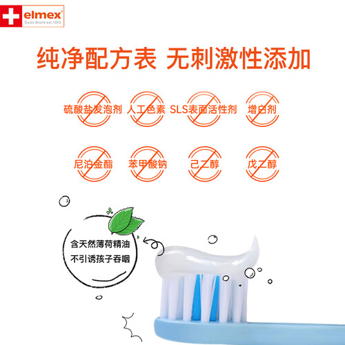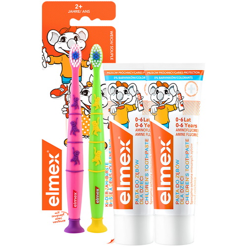 ELMEX艾美适含氟儿童牙膏0-6-12岁防蛀防龋齿换牙期进口牙刷套装 儿童牙膏*2+儿童牙刷两支装