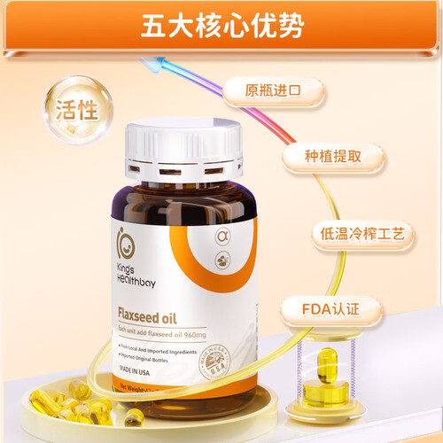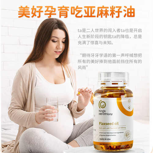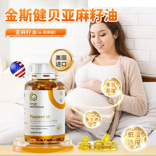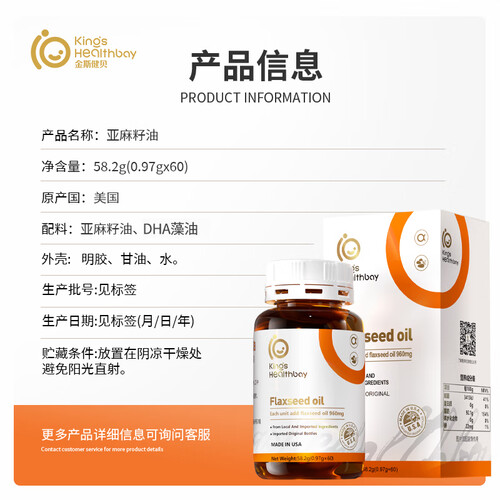 金斯健贝亚麻籽油DHA葵花籽油亚麻籽α-亚麻酸儿童宝宝dha美国原瓶进口 1瓶装(60粒)