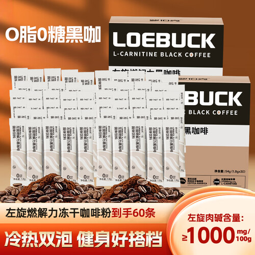 轻上罗伯克醇香拿铁咖啡整箱瓶装拿铁丝滑拿铁咖啡饮料 左旋燃解力黑咖啡粉1.8g*60条
