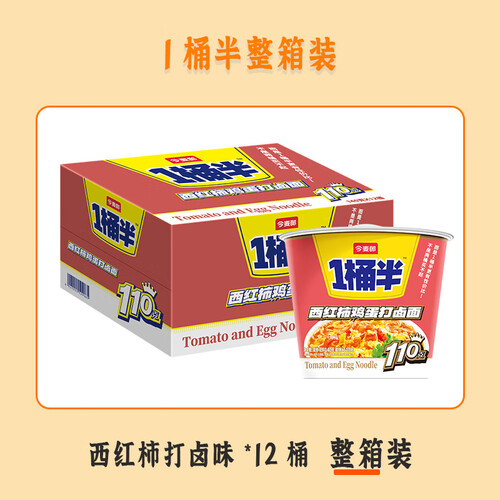 今麦郎 方便面一桶半红烧牛肉面大分量面饼桶装泡面 【12桶整箱装】西红柿打卤面