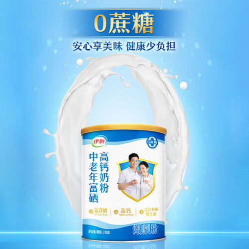 伊利中老年富硒高钙奶粉700g*2礼盒 0蔗糖高蛋白