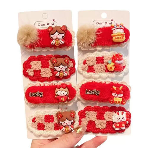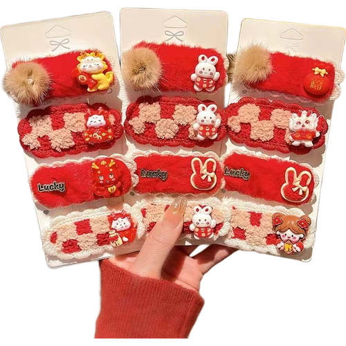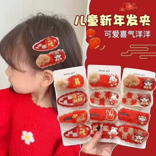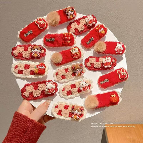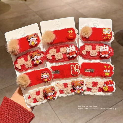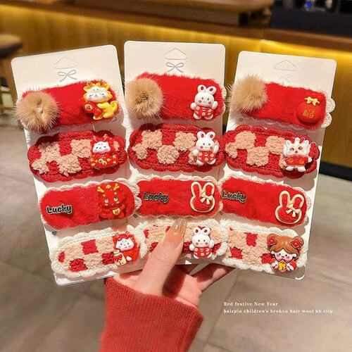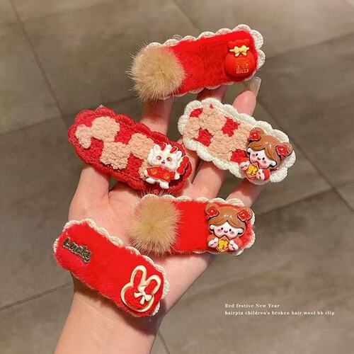 可爱新年红色毛绒发夹女秋冬2025新款侧边刘海夹儿童bb夹发卡头饰 02【福袋】