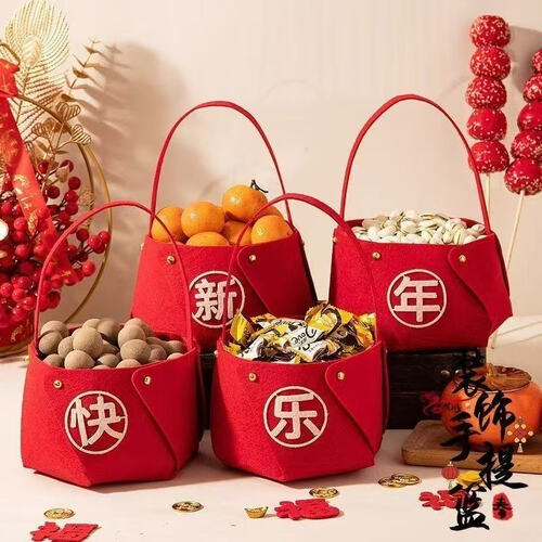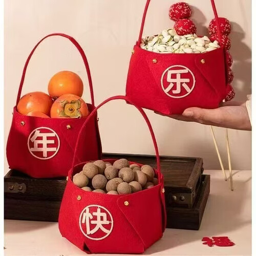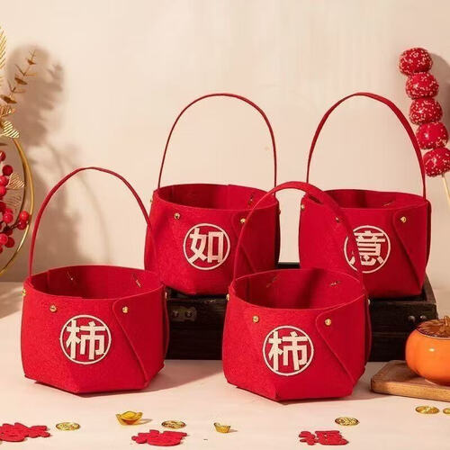 京东快递新年搬迁手提包便捷储物包新年装饰毛毡储物包乔迁之喜 【随机】两个装 【高度20cm*宽度14cm】