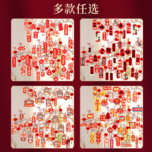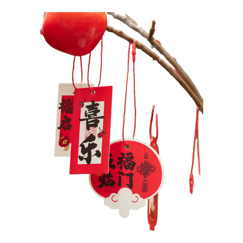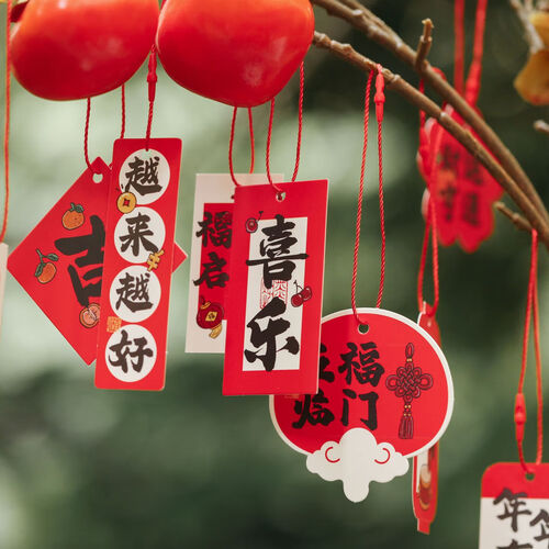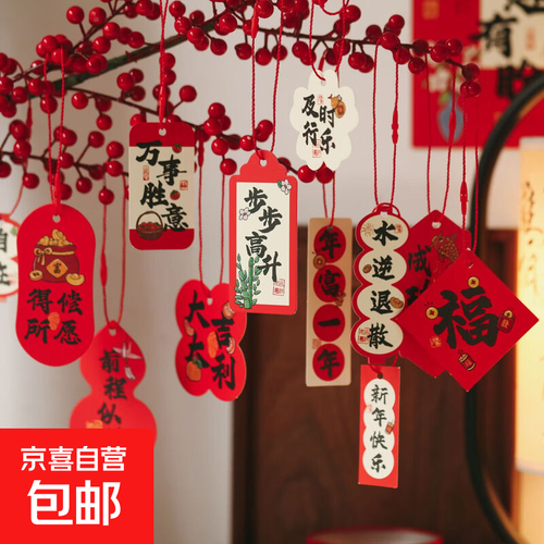 2026新年平安喜乐绿植盆景吊牌玩具挂卡中国风心愿卡小挂饰喜庆 【吉祥如意系列】64个+小绒球灯笼8个(送红绳)