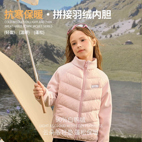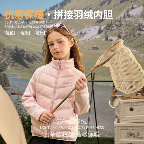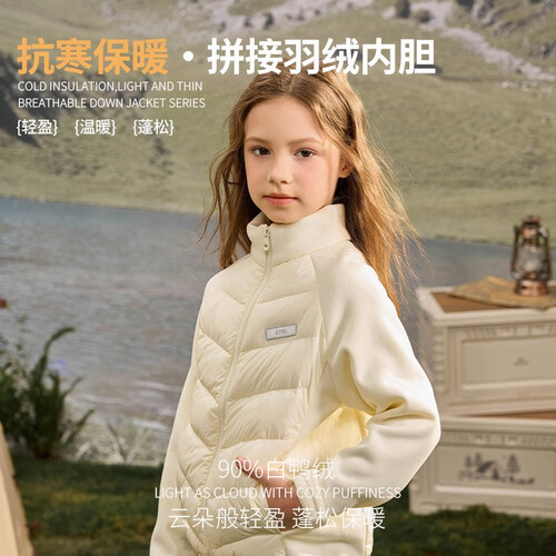 棉致2025新款90白鸭绒轻薄羽绒服冬季时尚拼接校服神器外套中大童上衣 杏 110