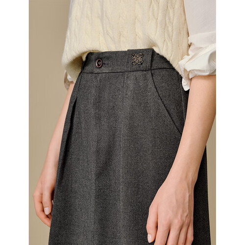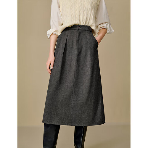 茵曼(INMAN)【商场同款】2025秋冬女装新款磨毛收褶开叉半身裙A字裙子 深灰色 S
