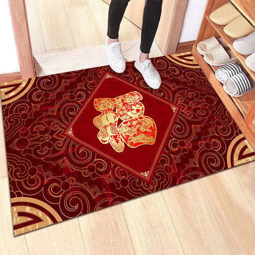 KAYE迎新年马年地垫入户门垫门口进门喜庆红地垫家用过年吸水防滑垫子 SJR-平安喜乐 40x60 cm(浴室专用)