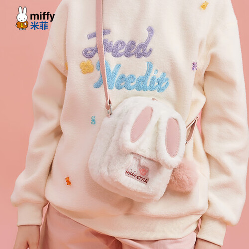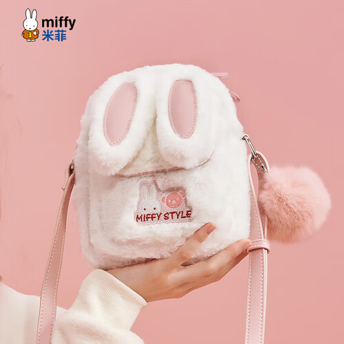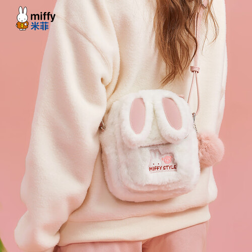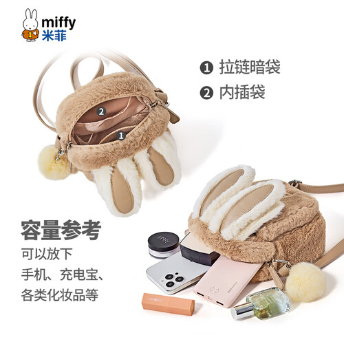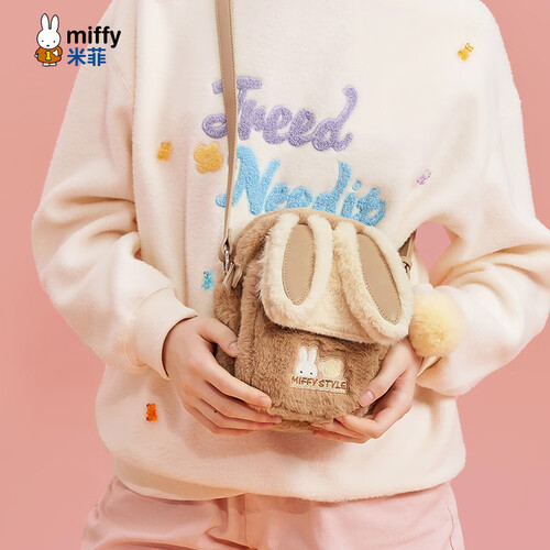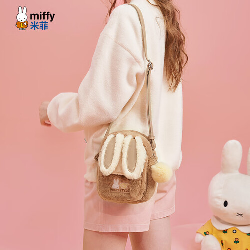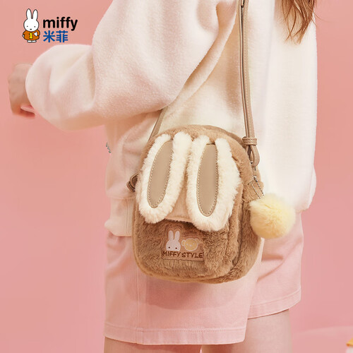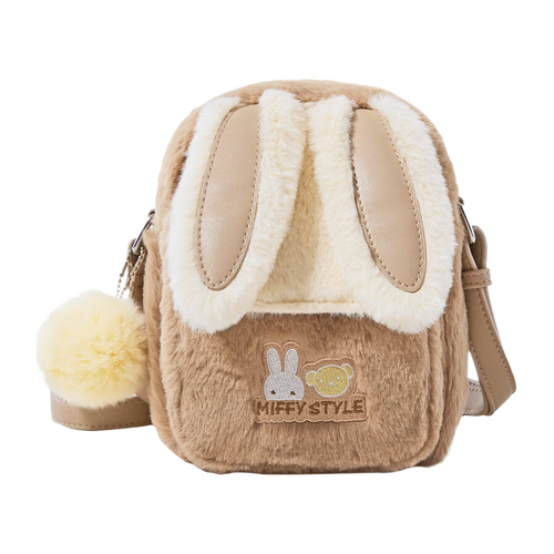 米菲(MIFFY)斜挎包女高级感单肩隔层小方包毛绒包生日礼物可爱风兔耳朵带挂件 卡其色