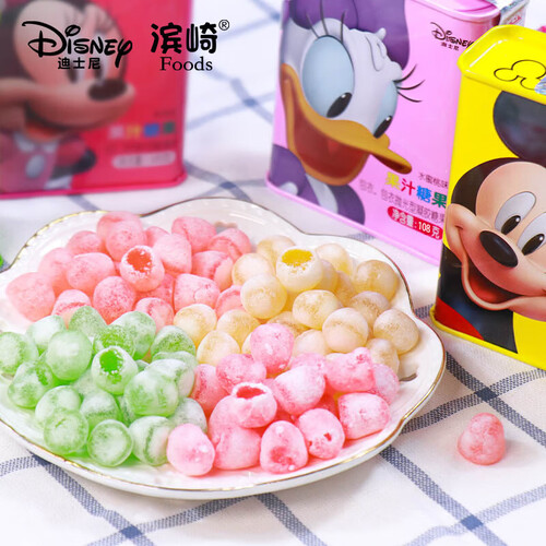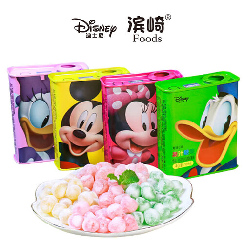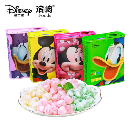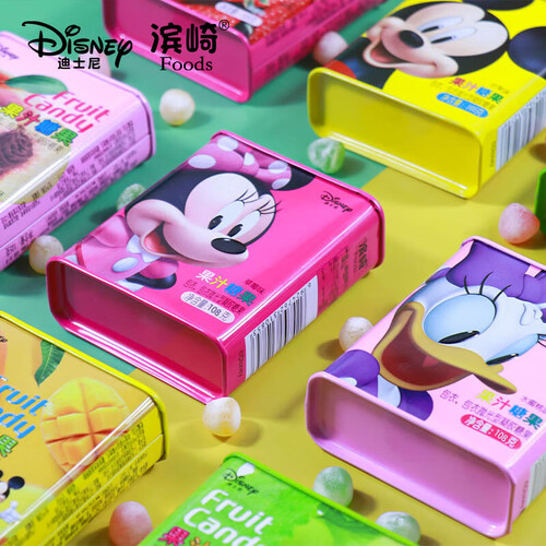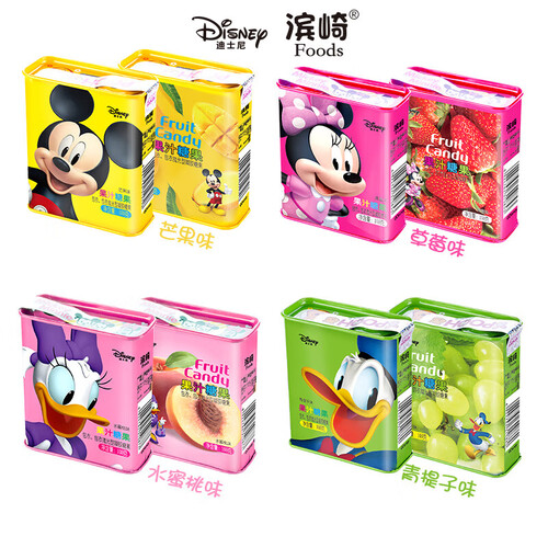 迪士尼正版儿童果汁软糖果礼盒铁罐装米奇草莓熊多口味送礼零食 【尝鲜装1罐】青提味
