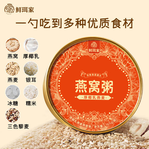 鲜珥家银耳燕窝粥礼盒开盖即食营养早餐进口速食粥燕麦藜麦血糯米红豆粥 燕窝粥165g*6碗装【2种口味】