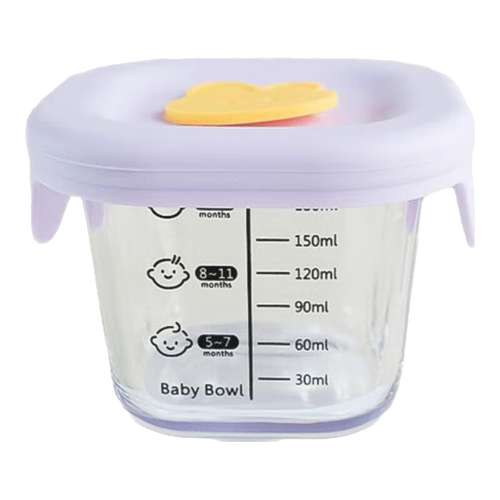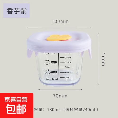 辅食碗耐高温玻璃可蒸煮蛋羹碗可微波冷冻保鲜盒上班族学生可用 方形香芋紫色黄兔硅胶盖