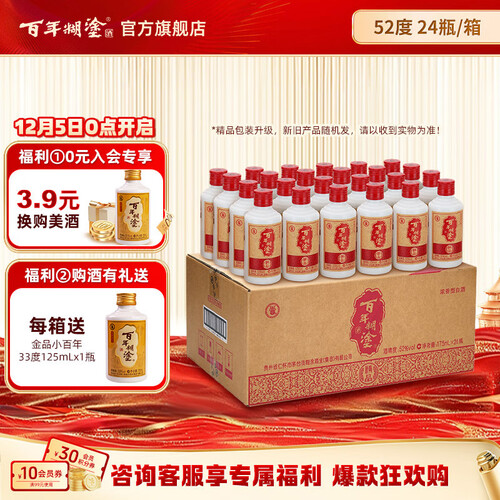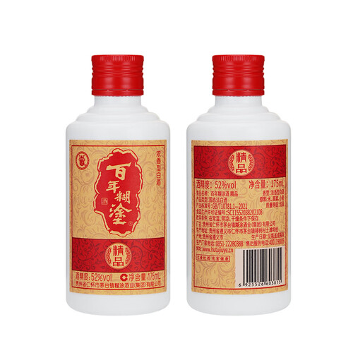 百年糊涂【入会领券】52度精品小百年小酒 浓香型白酒 新年节日送礼白酒 52度 175mL 24瓶 下单咨询有福利