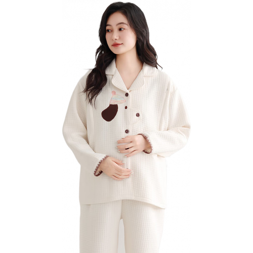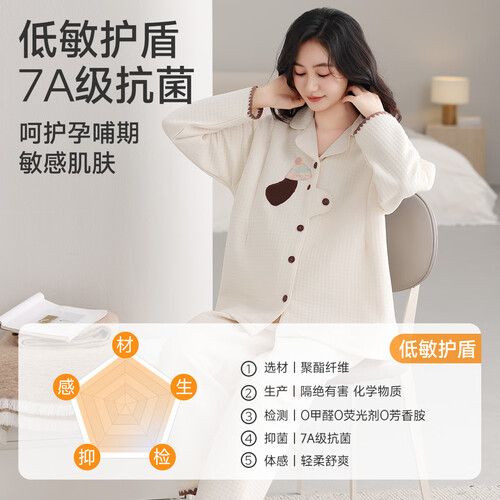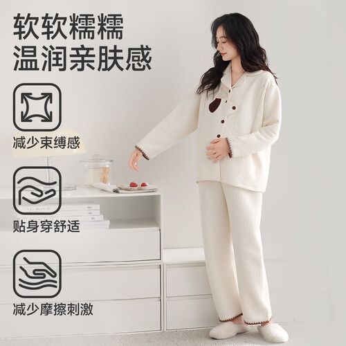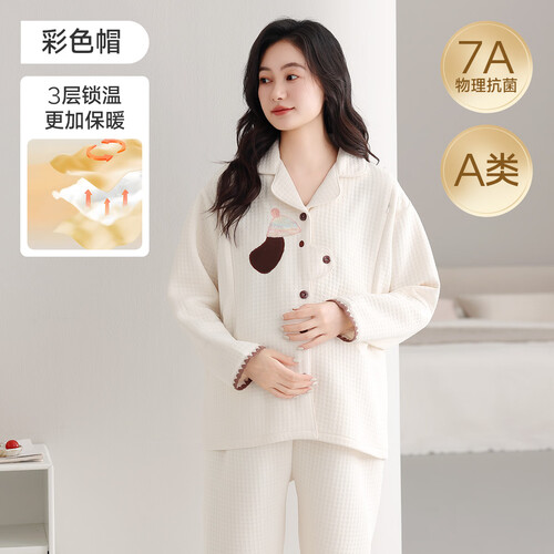 - 婧麒(JOYNCLEON)月子服空气层加厚孕妇睡衣保暖月子服产妇哺乳家居服女 彩色帽 L