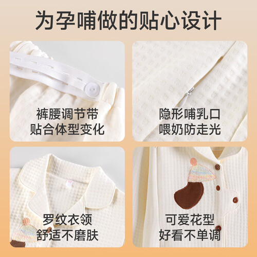 婧麒(JOYNCLEON)月子服空气层加厚孕妇睡衣保暖月子服产妇哺乳家居服女 彩色帽 L