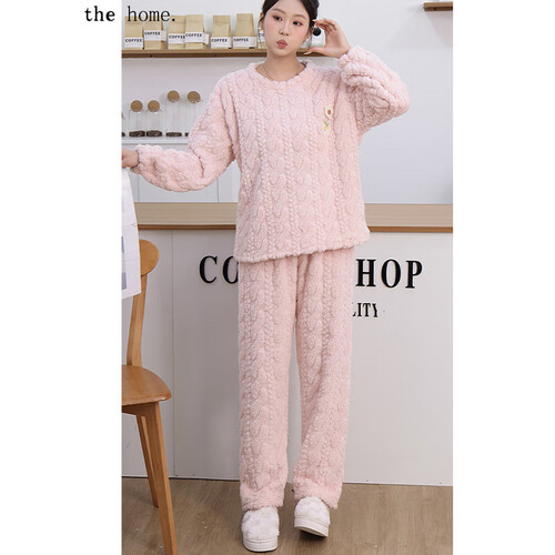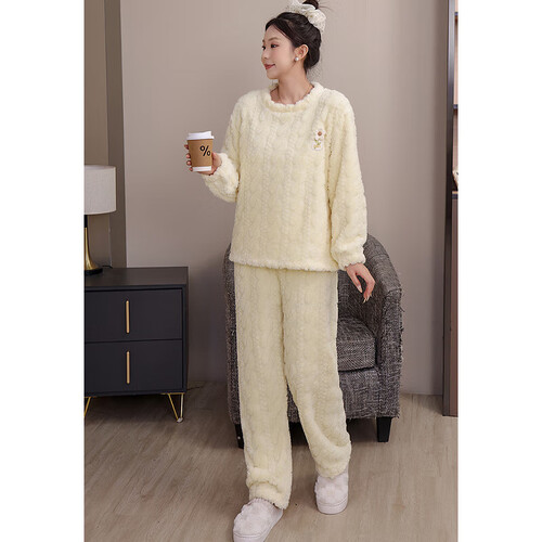 - 宝娜斯(BONAS)小花朵珊瑚绒睡衣女冬季长袖加绒加厚保暖家居服套装秋冬 米黄色 均码 80-140斤