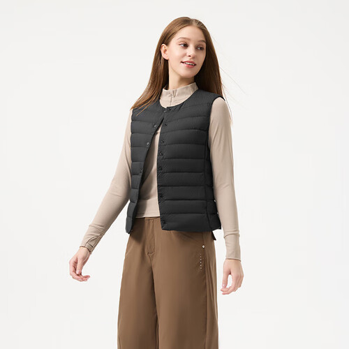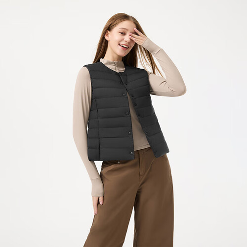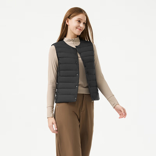 坦博尔羽绒马甲女新款2025年初秋短款轻薄百搭保暖马甲外套TB5330116A 黑色 XS (155)
