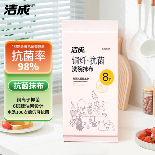 洁成抗菌抹布加厚洗碗布百洁布厨房清洁吸水不易掉毛 抗菌抹布8片装【30cm*30cm】