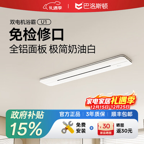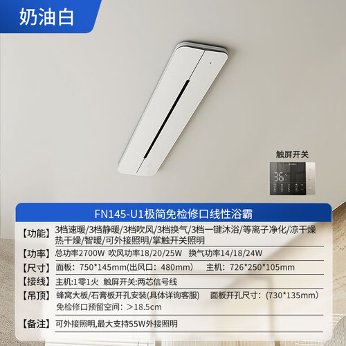 巴洛斯顿免检修口线性风暖型浴霸除菌浴室卫生间蜂窝石膏大板吊顶取暖排气 U1奶油白免检修口