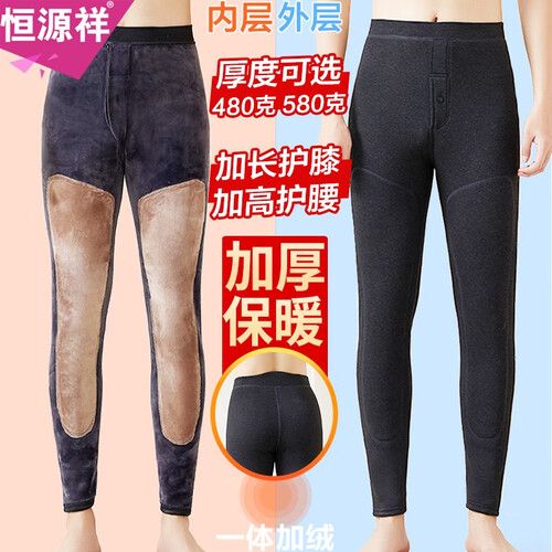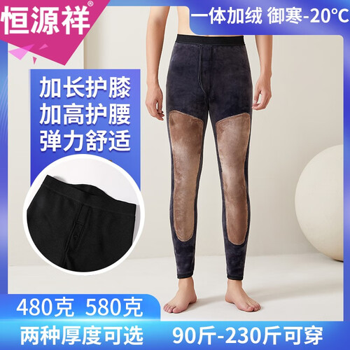 恒源祥保暖裤男加绒加厚高腰护膝修身显瘦打底裤中老年秋裤一体棉毛裤 黑色(480克)加厚加长护膝 L 建议90-145斤