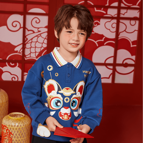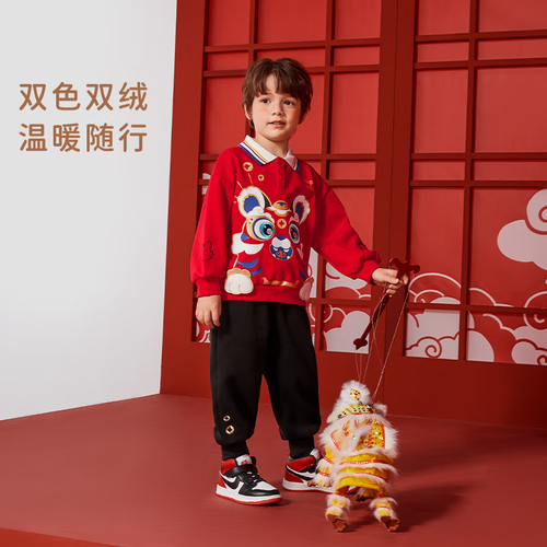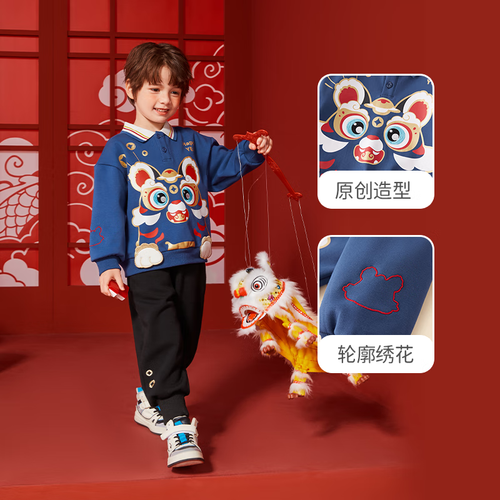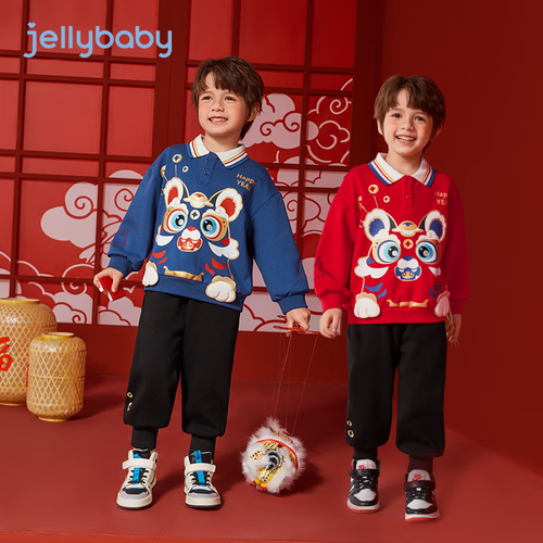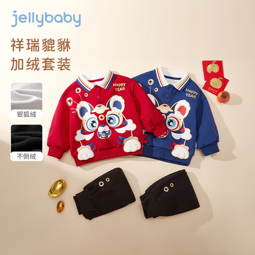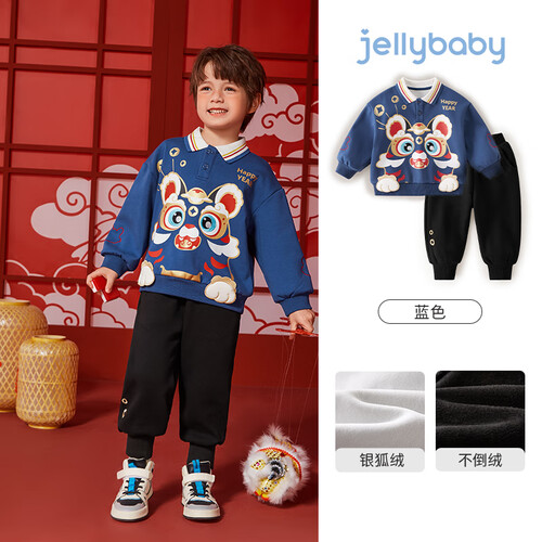 JELLYBABY童装男童套装秋冬款宝宝红色冬季加绒儿童卫衣裤子两件套冬装 蓝色 90CM