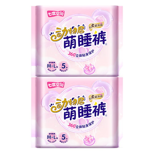 七度空间安心裤裤型卫生巾夜用动物君萌睡裤安睡裤拉拉裤 M-L码 10条 80-120斤