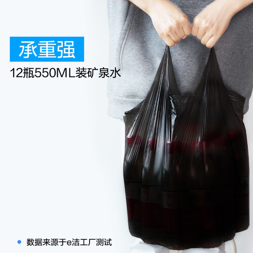 e洁手提式垃圾袋八折背心垃圾袋家用办公分类 108只10L 国标易撕背心 45x59cm