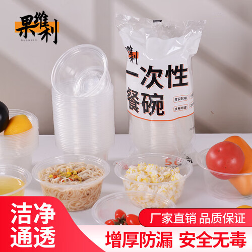 果维利食品级一次性碗家用打包聚餐酒席加厚圆碗露营新年春节 无盖360型升级加厚碗300只