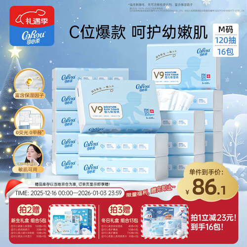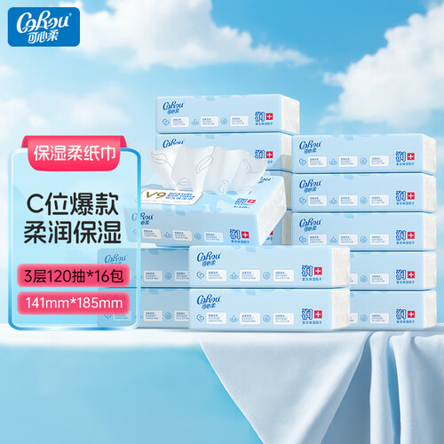 可心柔(COROU)抽纸 婴儿柔纸巾 3层M码120抽16包 保湿纸巾 云柔巾 乳霜纸 整箱