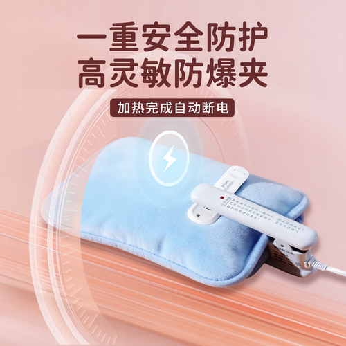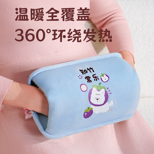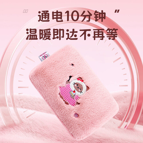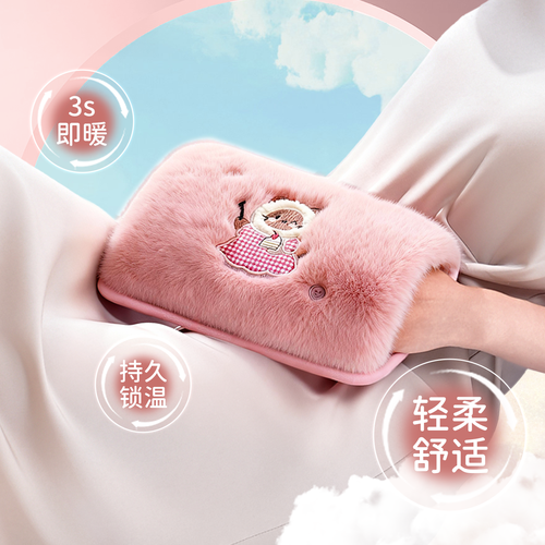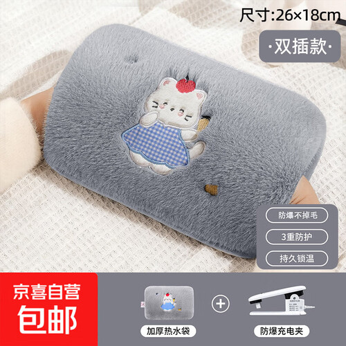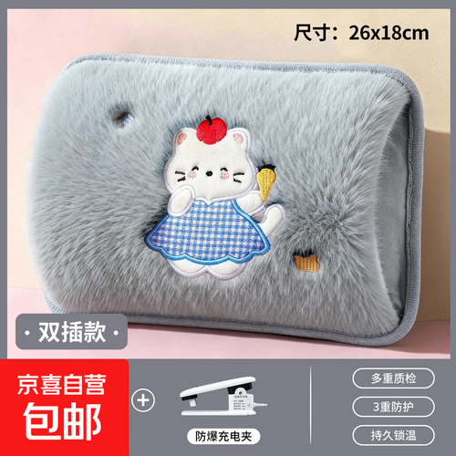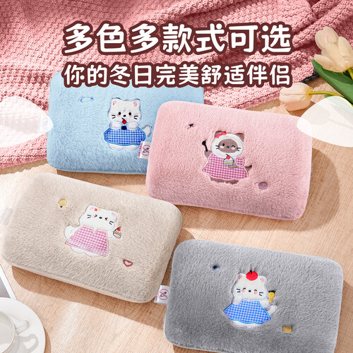 淘小沐电热水袋取暖器暖手宝暖宝宝仿兔毛电暖水袋国标充电款安全防爆大容量暖被暖脚 懒懒猫咪【高端刺绣米貂绒|高级灰】