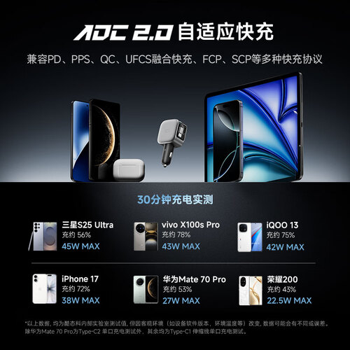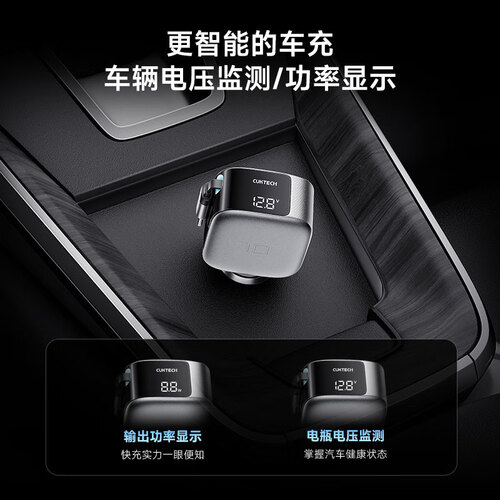 CUKTECH酷态科10号车载充电器90w快充点烟孔取电器70cm伸缩线电压数显