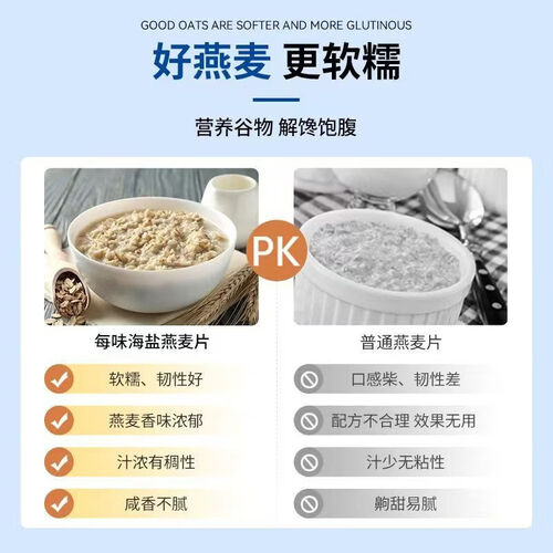 海盐燕麦片0+蔗糖即泡即食高饱腹抗饿早餐主食代餐谷物 海盐麦片180g装*1袋