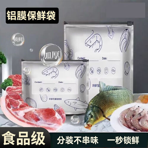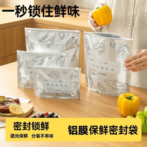 铝膜食品保鲜密封袋滑索夹链式家用冰箱冷冻锁鲜食物分装收纳袋子 【中号】 10个