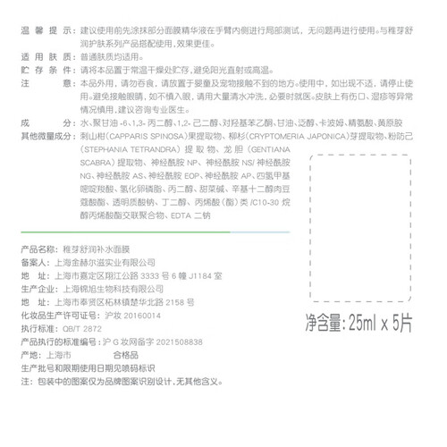 稚芽准孕妇面膜 清润补水保湿滋润护肤品男女可用补水面膜 【体验装】面膜*1盒