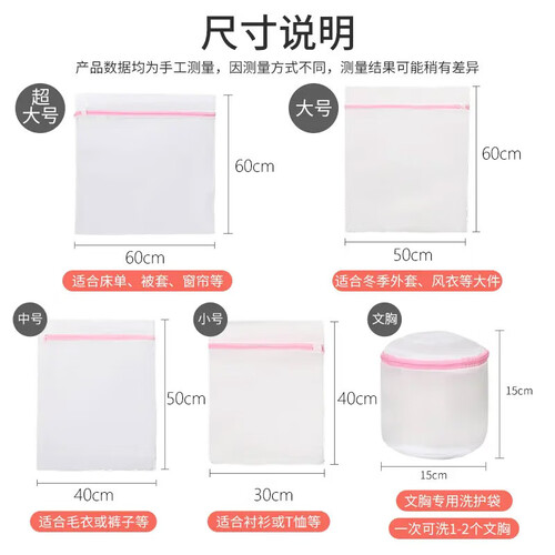 - 京东物流 防变形洗衣袋洗衣机专用过滤网防缠绕内衣洗文胸网袋 防变形 防缠绕 细网 超小号+小号+中号+大号
