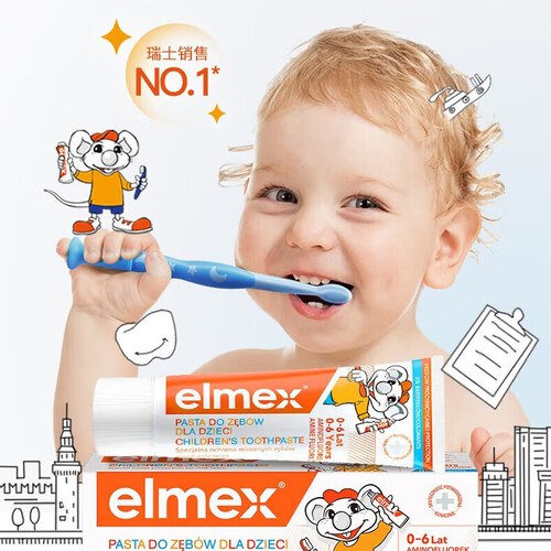 - ELMEX艾美适儿童0-3-6岁牙膏含氟防蛀抗糖欧洲进口不辣口低泡牙膏 0-6岁牙膏50ml