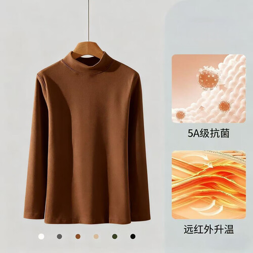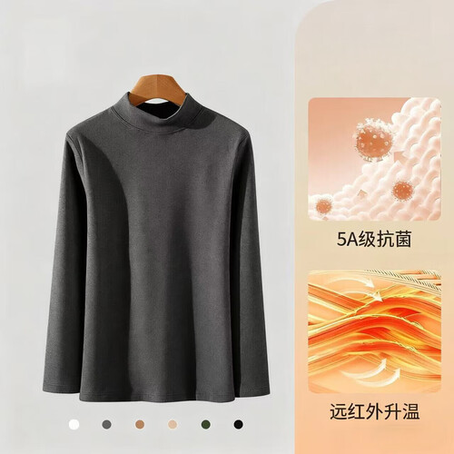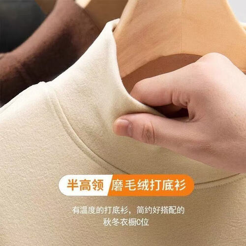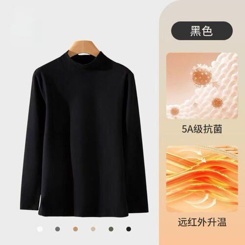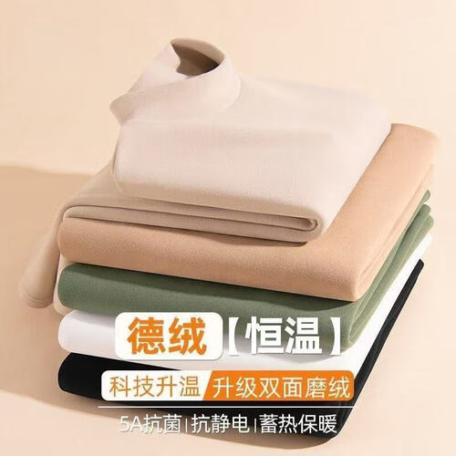 - 男士半高领磨毛长袖双面德绒秋衣打底衫秋冬季恒温保暖舒适上衣服 墨绿色 130克 3XL