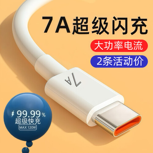 - 手机数据线适用华为typec7A快充p70p30p40mate荣耀nova7pro小米vivo手机tapyc充电线安卓typec 2.0米【2条装】