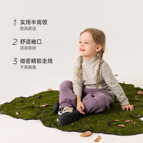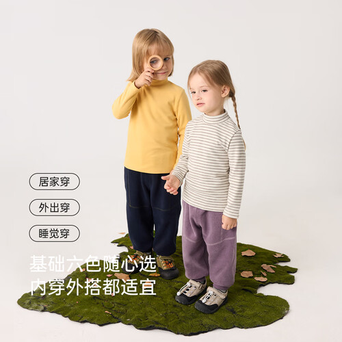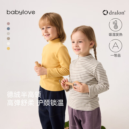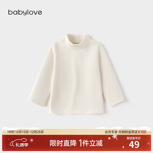 babylove婴幼儿春秋上衣新生儿长袖半高领德绒打底衫宝宝基础款春季内搭 椰奶白 80 cm