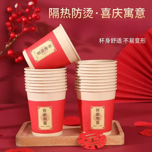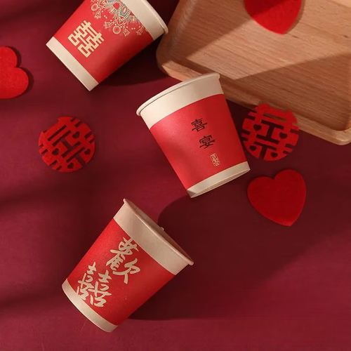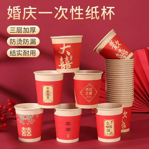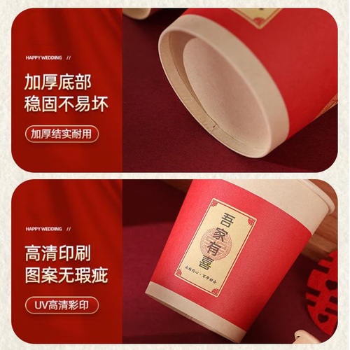 婚庆订婚宴婚礼敬茶杯加厚一次性喜杯子红色喜字水杯纸杯 加厚喜庆图案纸杯【图案混装发】 【实惠装】100只