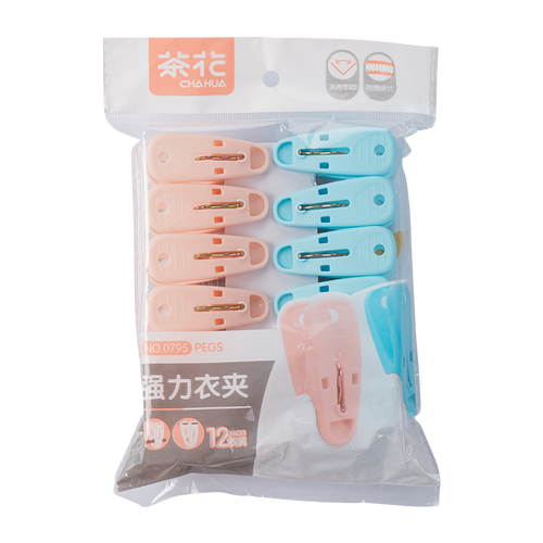 - 茶花夹子强力衣夹塑料夹晾衣架防风大号衣服被夹晒夹晾衣夹 强力衣夹(12个装)