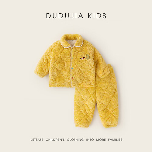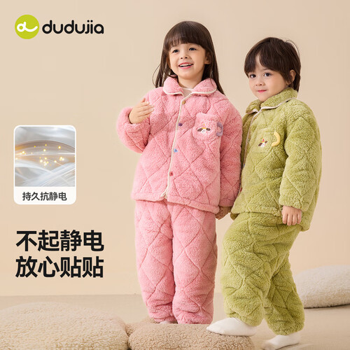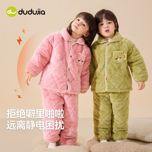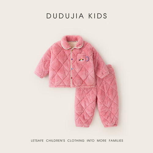 - 嘟嘟家【抗静电】儿童家居服冬季宝宝加厚套装冬款男童外套裤子女童童装 粉色 80