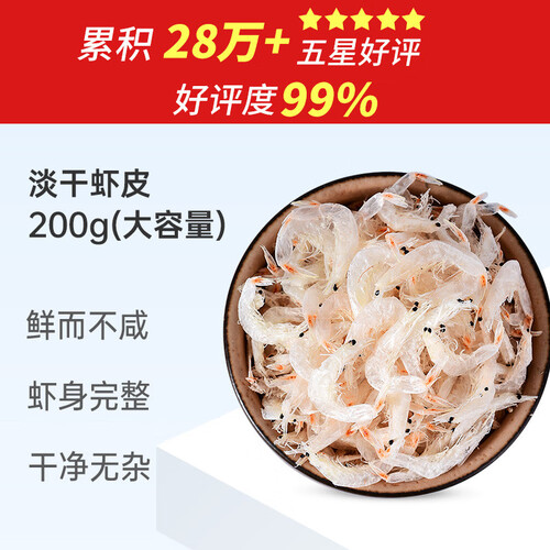 赶海弟 六星淡干虾皮200g无盐可打粉 虾米皮海米干虾仁 紫菜汤 海鲜干货