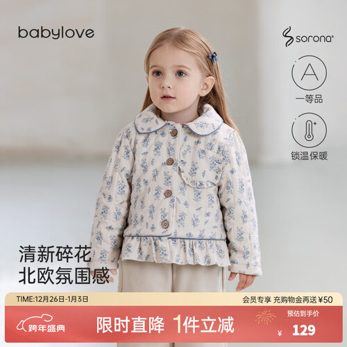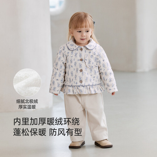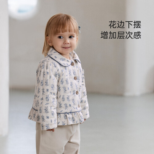 babylove女宝宝夹棉外套冬季加厚保暖棉服婴幼儿法式碎花棉服冬装 蓝屿谣 80