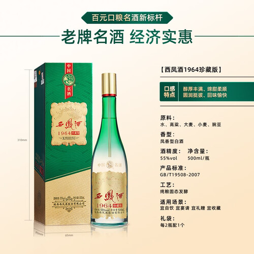 西凤酒【酒厂直营 正品保障】1964珍藏版凤香型 白酒送礼 55度 500mL 1盒 单瓶装