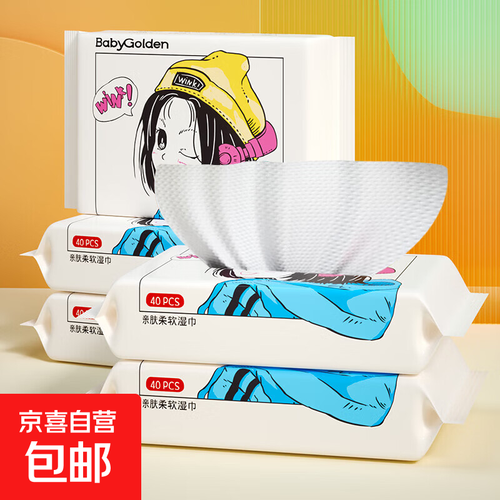 - 蓝漂湿巾纯水家庭装婴儿手口屁专用大包 40抽*2包